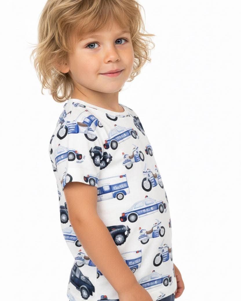 Chłopięca koszulka z motywem policji w kolorze niebieskim od Chrisma Kids Chłopięca koszulka z motywem...