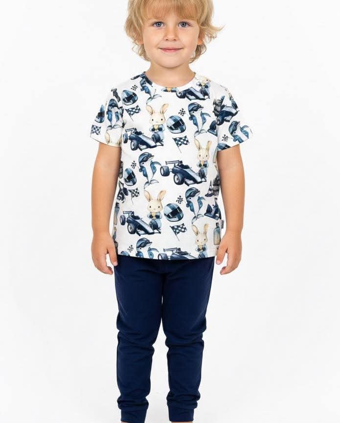Granatowa koszulka wyścigówka dla chłopca od Chrisma Kids Granatowa koszulka wyścigówka dla chłopca od Chrisma...