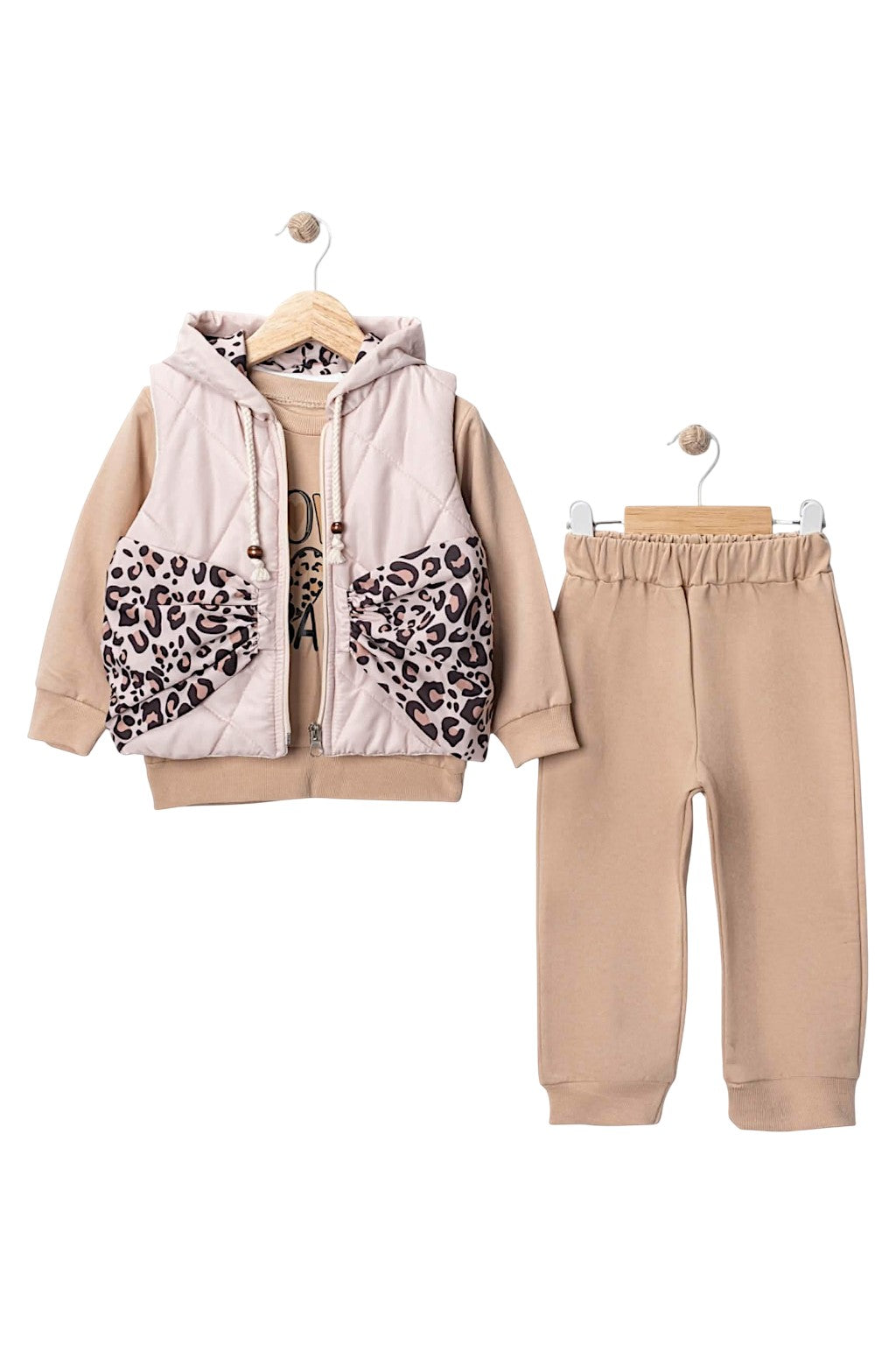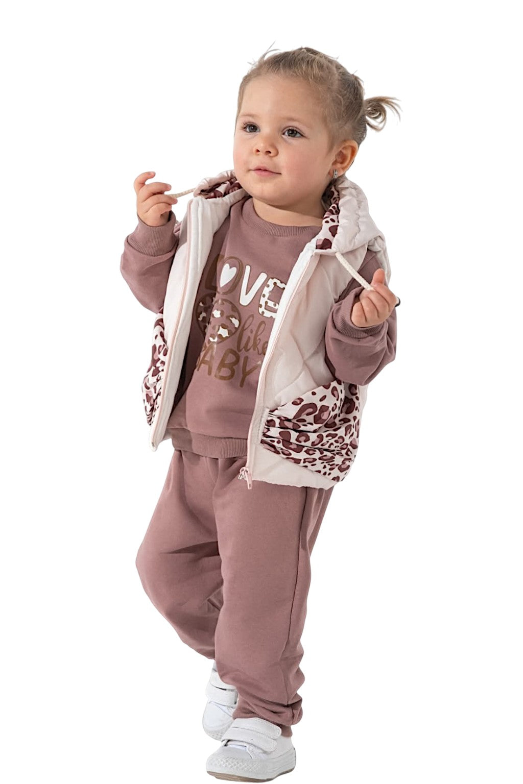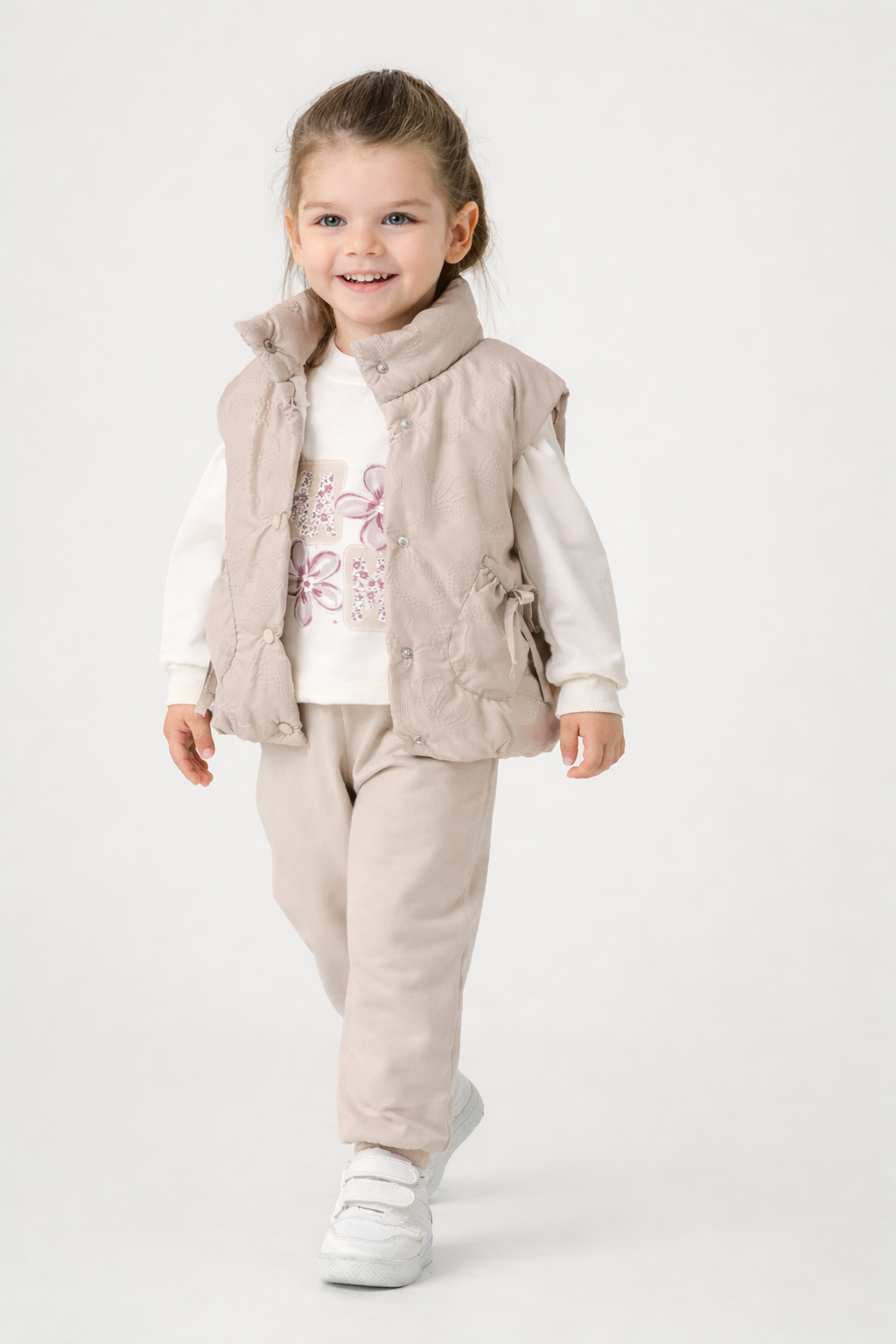 Dziewczęcy komplet z beżową kamizelką Mirkon Prezentujemy uroczy komplet dziewczęcy składający się z dresu i...