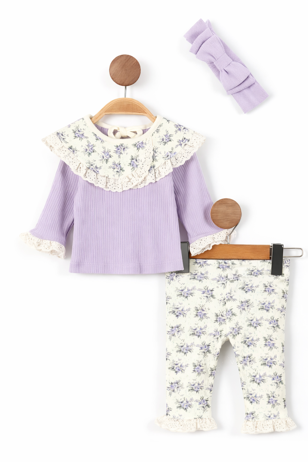 Dziewczęcy komplet z opaską w kolorze lila Minijon Przedstawiamy uroczy komplet dziewczęcy w kolorze lila...