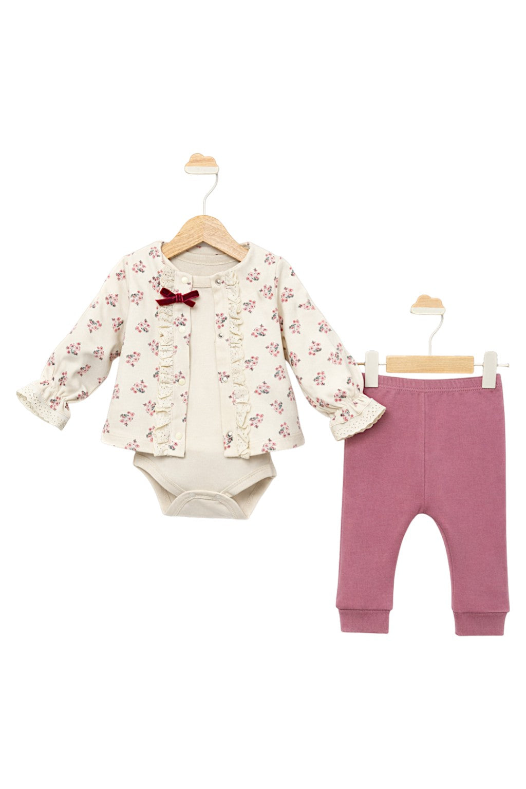 Komplet kwiatowy z body 3-pak dziewczęcy brudny róż Murat Baby 10276-25225-5
