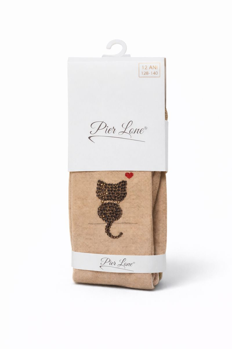 Dziewczęce rajstopy z cyrkoniami i motywem kotka w kolorze capucino Odkryj urocze rajstopy dziewczęce w...
