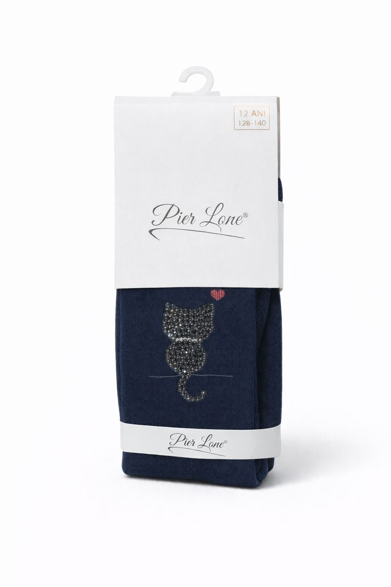 Dziewczęce rajstopy z motywem kotka i cyrkoniami w kolorze granatowym Te urocze rajstopy dziewczęce w...