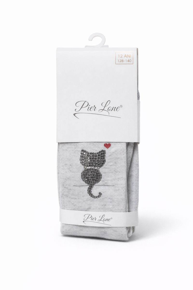 Dziewczęce rajstopy z cyrkoniami i motywem kota w kolorze szarym Odkryj urocze dziewczęce rajstopy w...