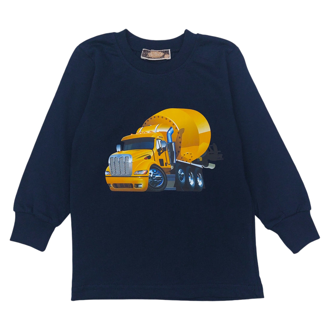 Bluzka chłopięca Your Word 864-30924 w kolorze granatowym z efektownym nadrukiem żółtej betoniarki na przodzie....