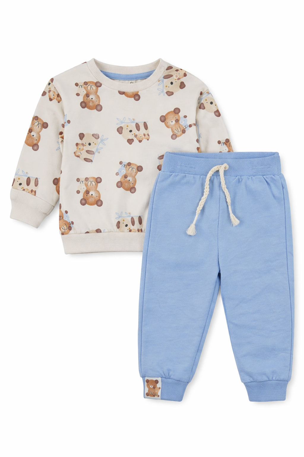 Komplet dresowy 3 części z body w misie chłopięcy beż Murat Baby 8963-13924
