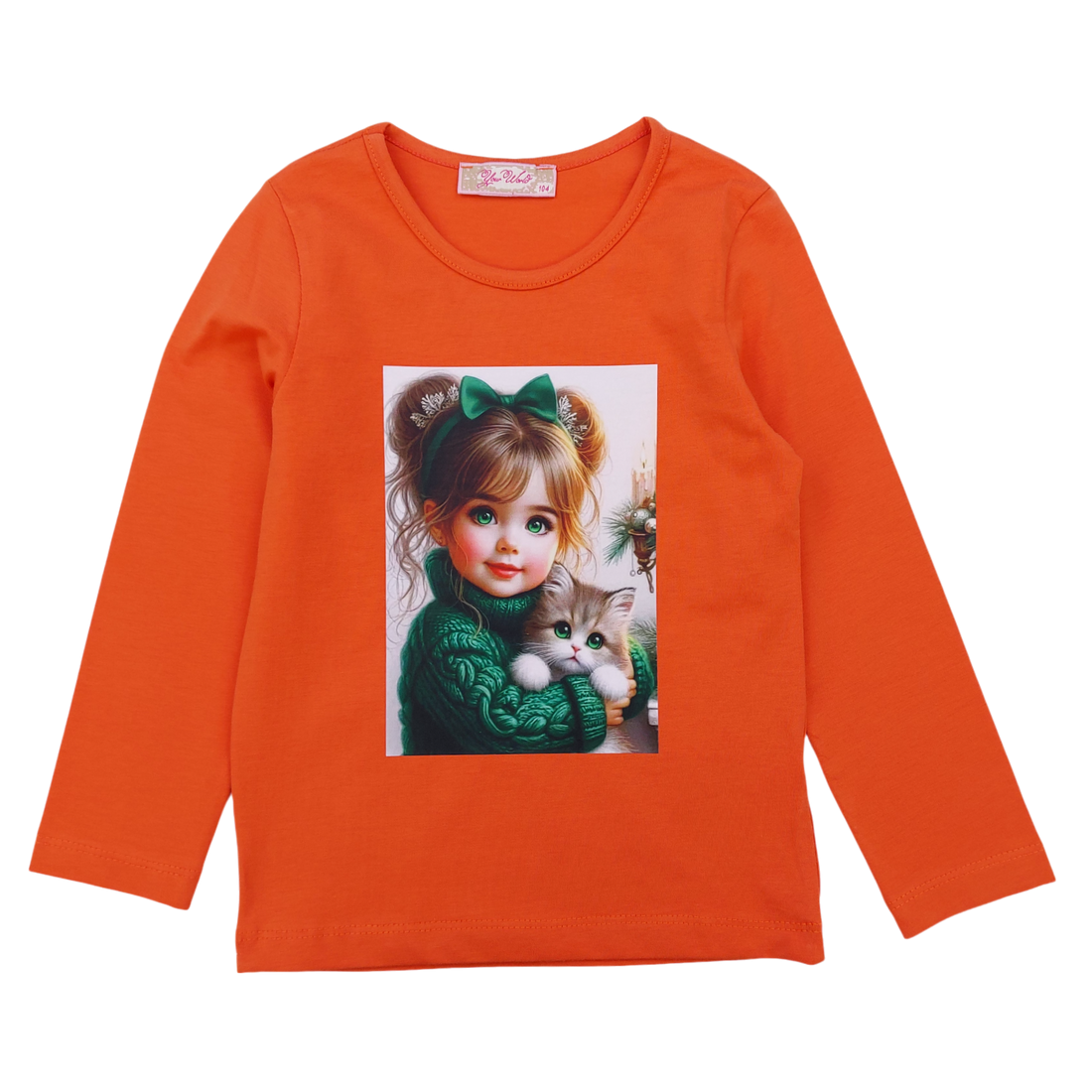 Bluzka bawełniana z kotkiem dziewczęca pomarańcz Your Word 5462-191024-51