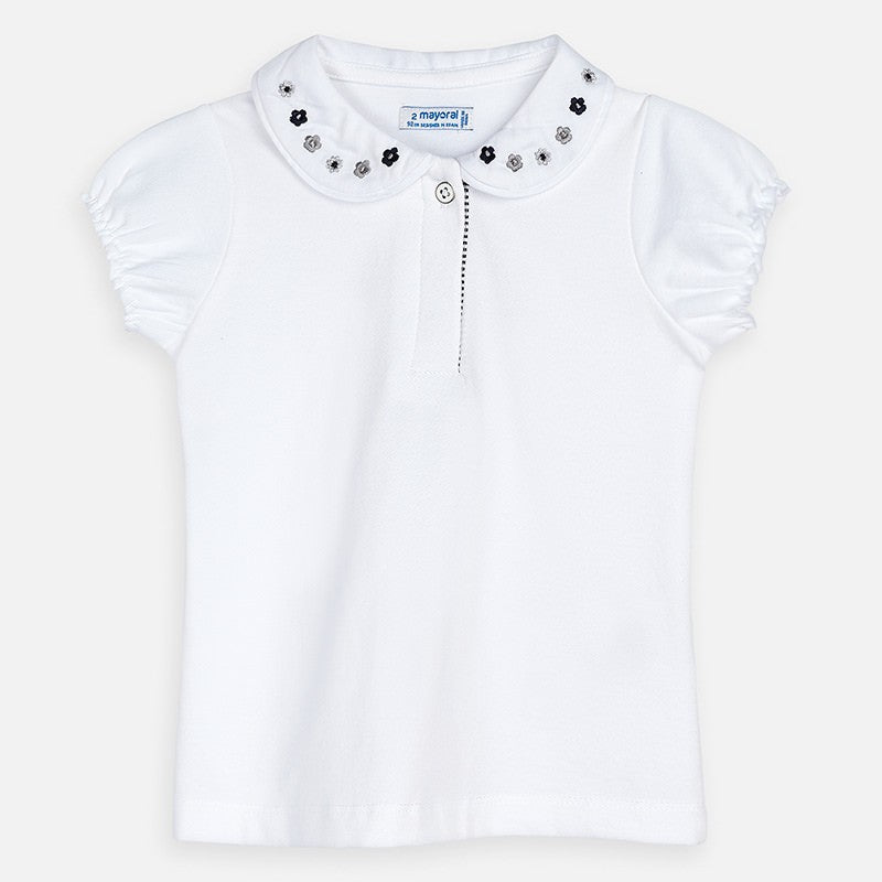 Polo bawełniane z kołnierzykiem dla dziewczynki Mayoral 3178-51 białe