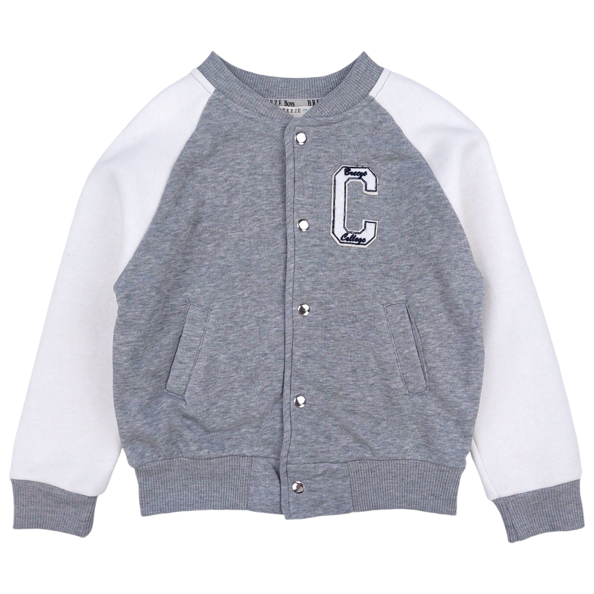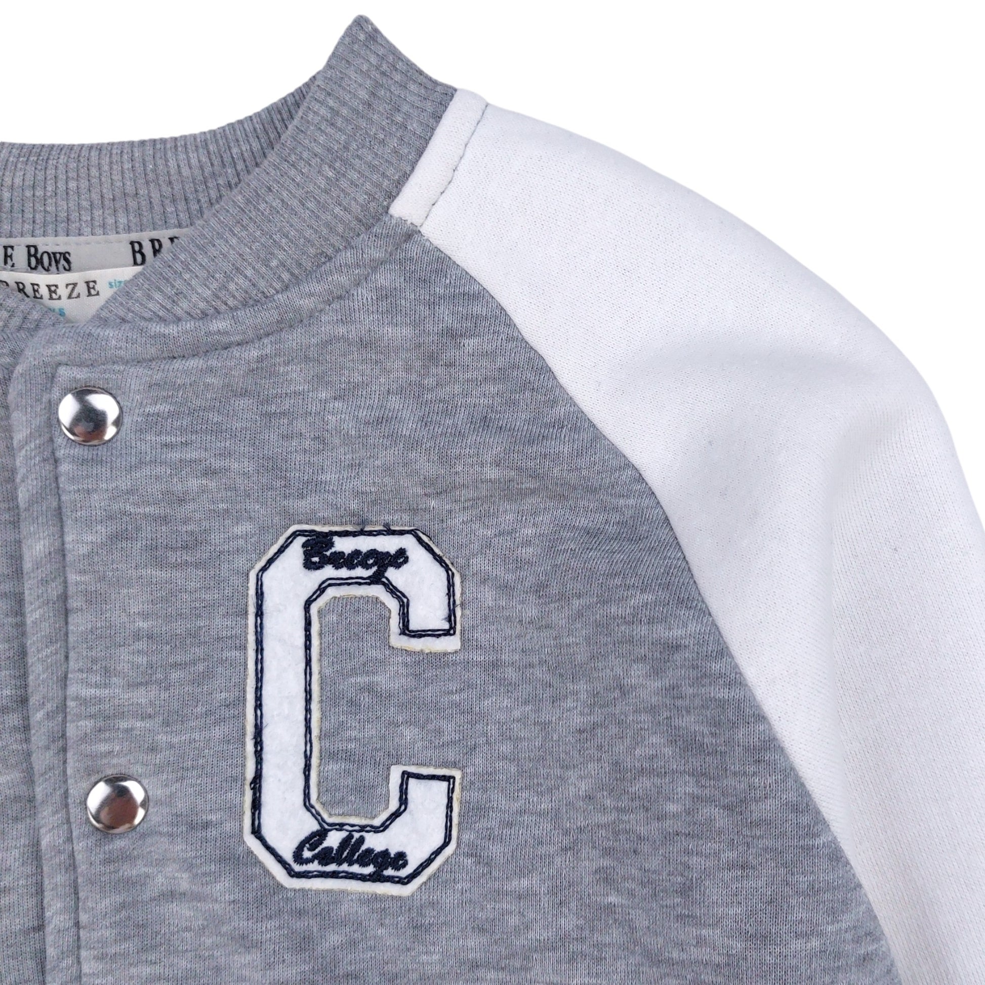 Bluza chłopięca Breeze model 19583-23824 GKMOC to stylowa bejsbolówka na sezon jesień-zima, wykonana w odcieniach szarości z kontrastowymi, białymi rękawami. W całości uszyta z wysokiej jakości bawełny (100%), zapewnia maksymalny komfort noszenia i przewiewność. Zapinana na zatrzaski, z elegancką naszywką z literą „C” na piersi, podkreśla sportowy, a zarazem modny styl. Ściągacze na rękawach i dole bluzy zapewniają dobre dopasowanie i wygodę ruchów. To idealny wybór na co dzień dla chłopca, który ceni sobie wygodę i modny wygląd.