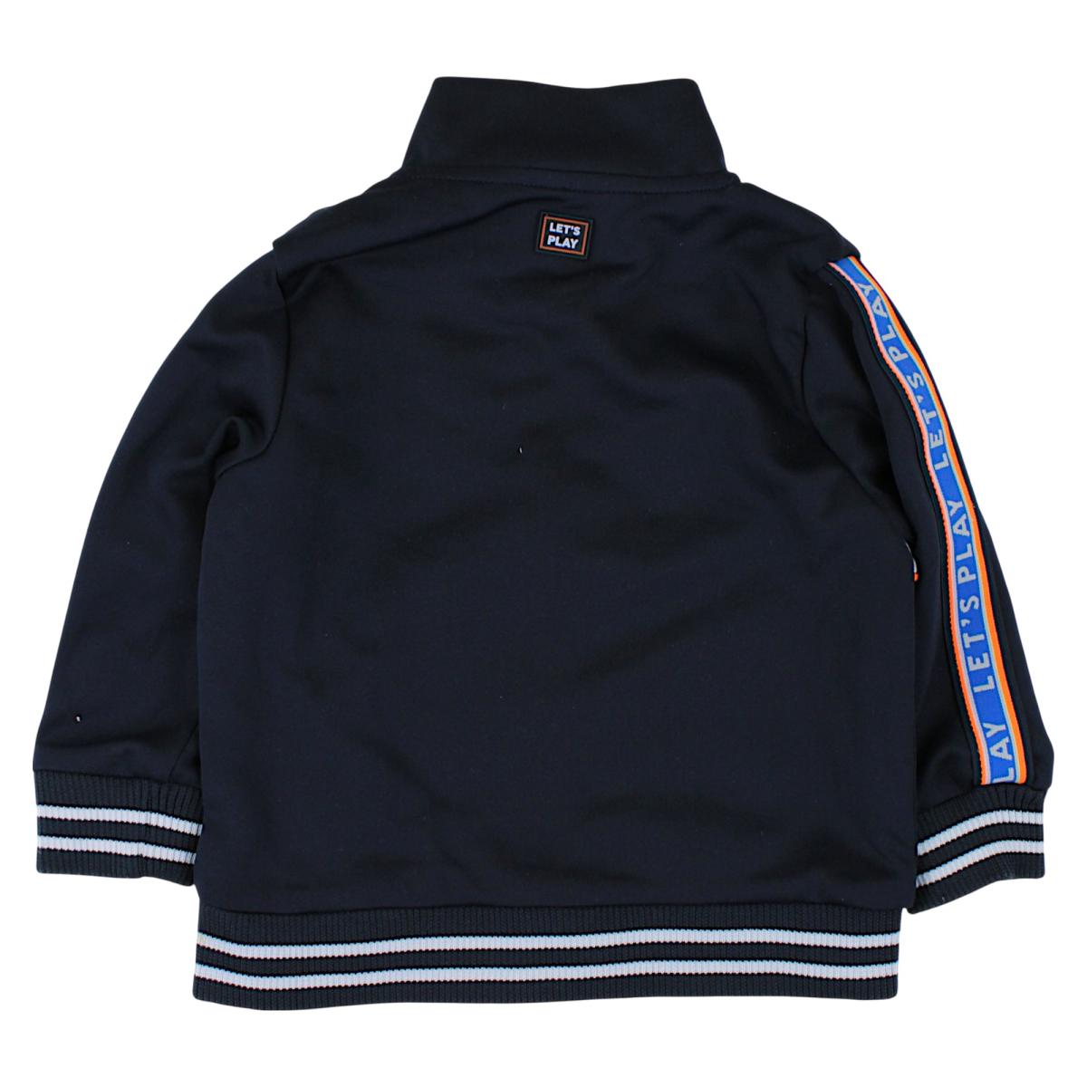 Oferujemy stylową kurtkę w kolorze niebieskim, idealną na chłodniejsze dni. Model ten ma zapięcie na zamek, co zapewnia wygodę noszenia, a także dwie kieszenie wpuszczane z boku, które są doskonałym miejscem na drobne skarby dziecka. Kurtka ozdobiona jest kolorowymi pasami oraz naszywką, co dodaje jej atrakcyjności. Rękawy zakończone są praktycznymi ściągaczami, co pozwala na lepsze dopasowanie.