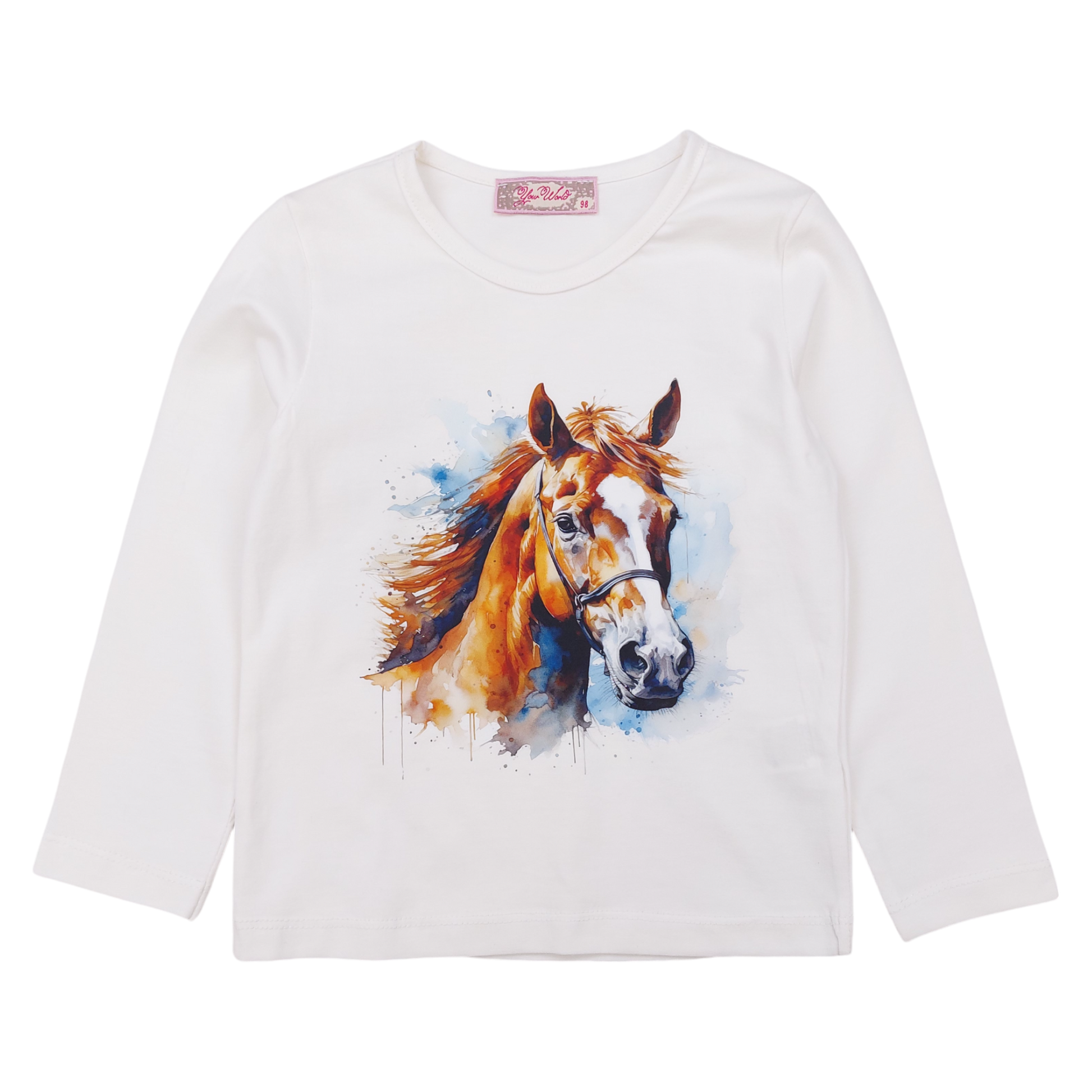 Bluzka bawełniana Koń dziewczęca Your Word 5462-191024 z sezonu jesień-zima w kolorze kremowym. Bluzka z długim rękawem, ozdobiona pięknym nadrukiem konia w żywych kolorach, idealna dla młodych miłośniczek zwierząt. Wygodne zapięcie na ramieniu ułatwia zakładanie. Idealna do codziennego użytku oraz na specjalne okazje.