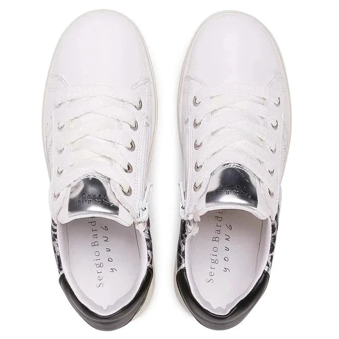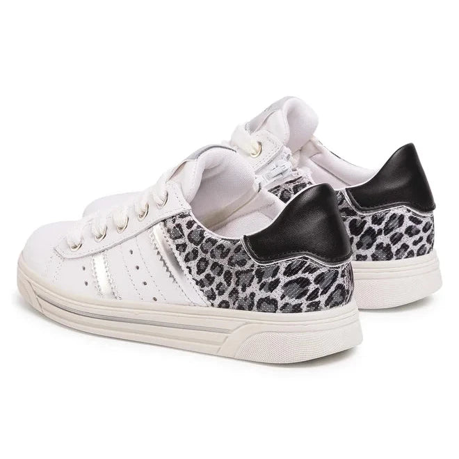 Sneakersy dla dziewczynek marki Primigi, model 530410, to modne obuwie dziecięce z kolekcji wiosna-lato. Wykonane z połączenia skóry naturalnej licowej oraz materiału, co zapewnia wygodę i trwałość. Cholewka w kolorze srebrnym przyciąga wzrok, a błyszczące detale dodają stylu. Buty są wiązane oraz wyposażone w zamek boczny, co ułatwia ich zakładanie. Wkładka wykonana jest z wysokiej jakości skóry, zapewniając komfort stopie, a wnętrze z materiału gwarantuje odpowiednią wentylację. Podeszwa z wysokogatunkowego tworzywa zapewnia dobrą przyczepność, a twarda wyściółka wpływa na stabilność stopy. To idealne obuwie dla aktywnych dziewczynek, które łączą wygodę z modnym designem.