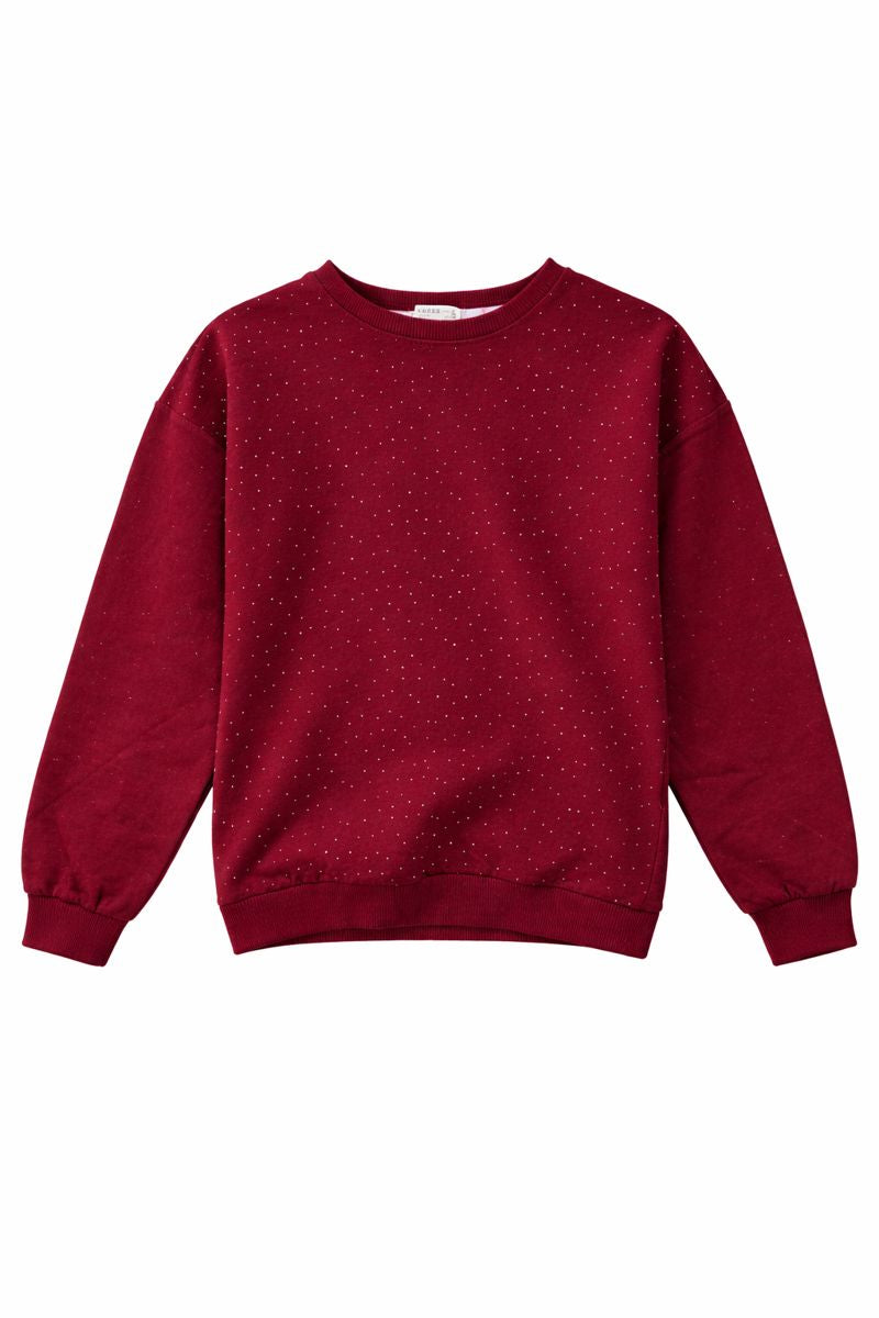 Prezentujemy dziewczęcy komplet bawełniany marki Breeze w eleganckim bordowym kolorze. Ten stylowy zestaw składa się z dwóch części: bluzy i spodni. Bluza posiada ozdobne kamienie strass, które dodają jej wyjątkowego blasku. Spodnie mają elastyczny pas, co zapewnia komfort noszenia. Idealny wybór na chłodniejsze dni, dzięki miękkiej i przyjemnej w dotyku tkaninie. Komplet nie posiada kieszeni ani zapięć, co podkreśla jego minimalistyczny design.