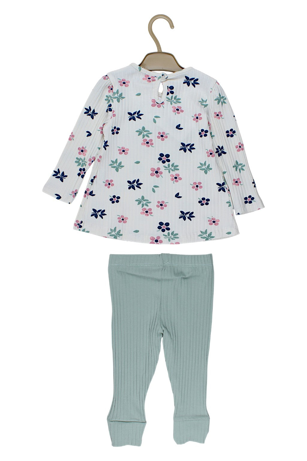 Dziewczęcy komplet bawełniany w kwiaty kremowy