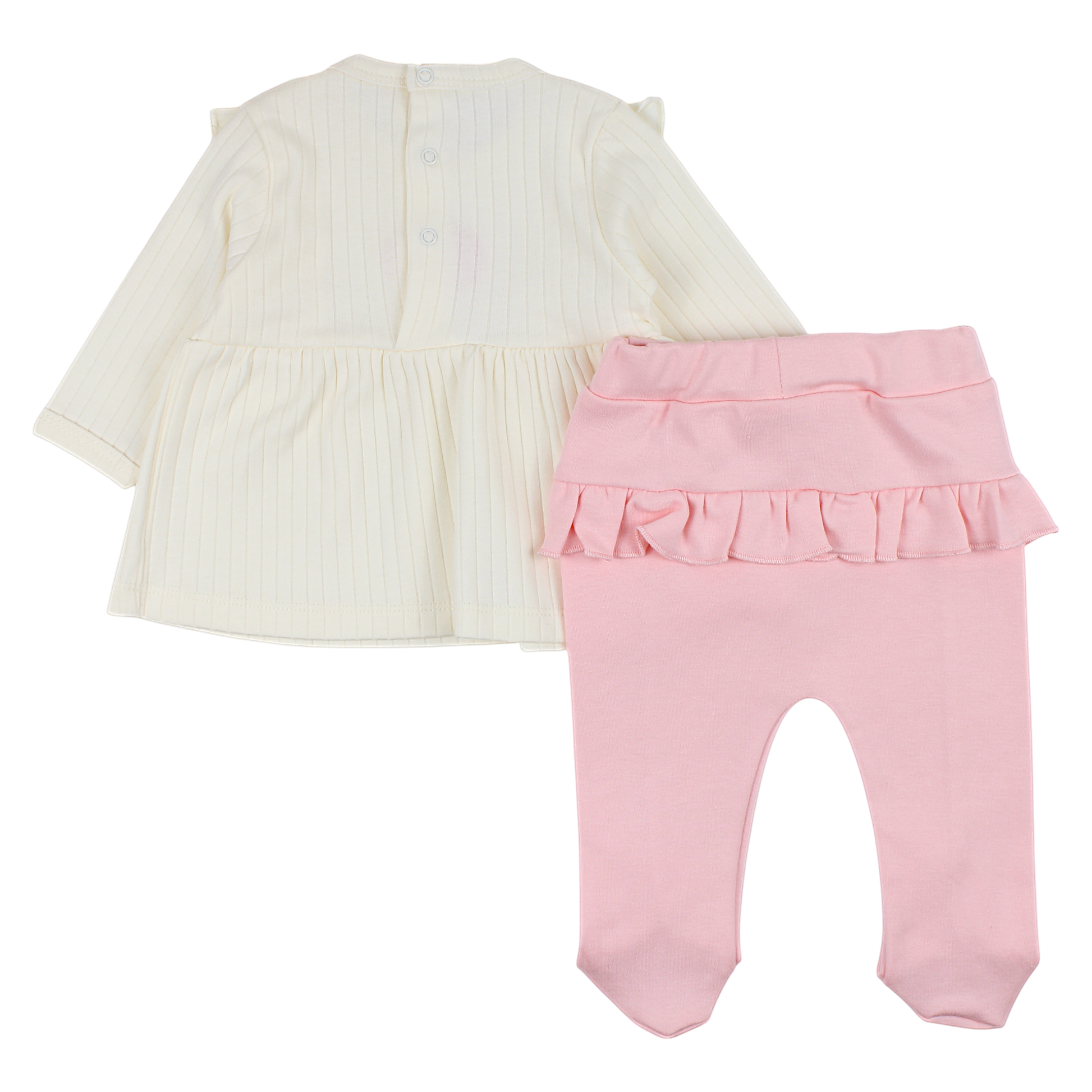 Półśpiochy, które dopełniają komplet, zostały wykonane z równie miękkiego materiału, zapewniając dziecku maksymalny komfort. W pasie zastosowano elastyczne wykończenie, co pozwala na swobodne ruchy maluszka, a jednocześnie utrzymuje ubranie na miejscu. Ten dwuczęściowy zestaw jest stworzony z myślą o małych dziewczynkach, które uwielbiają łączyć komfort z uroczym wyglądem. Połączenie funkcjonalności i estetyki sprawia, że komplet ten świetnie nadaje się do codziennego noszenia, jak i na wyjątkowe okazje, takie jak urodziny czy rodzinne spotkania.