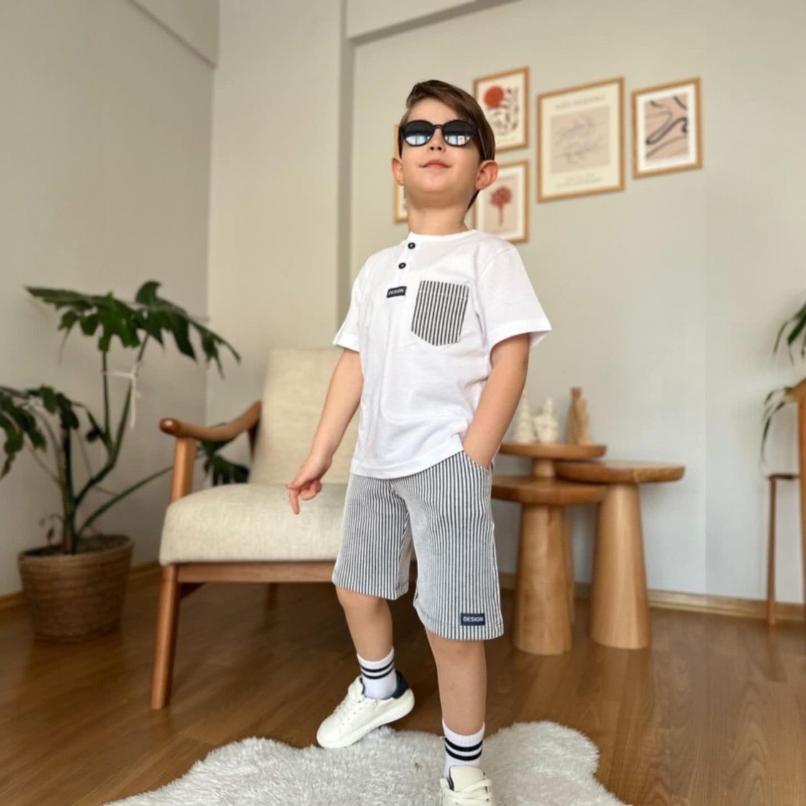 Elegancki komplet chłopięcy Kocak, zaprojektowany z myślą o komforcie i stylu najmłodszych. Zestaw składa się z dwóch elementów: subtelnej bluzki w kolorze popiel, która zapinana jest na guziki, oraz spodni z elastyczną gumką w pasie, umożliwiającą idealne dopasowanie. Bluzka wykonana z delikatnej bawełny oferuje miękkość i przewiewność, doskonała na ciepłe dni wiosny i lata. Posiada praktyczne kieszenie, które dodają jej funkcjonalności. Spodnie uzupełniają stylizację, wykonane w 50% z bawełny i 50% poliesteru, co gwarantuje zarówno wygodę, jak i trwałość. Z przodu komplet emanuje elegancją dzięki klasycznemu krojowi bluzki, natomiast tył jest jednolity i prosty, co podkreśla minimalistyczny design. Idealne rozwiązanie dla młodych, aktywnych chłopców, którzy pragną łączyć wygodę z modnym wyglądem. Produkt jest przeznaczony dla dzieci i doskonale sprawdzi się podczas codziennego użytkowania lub specjalnych okazji.