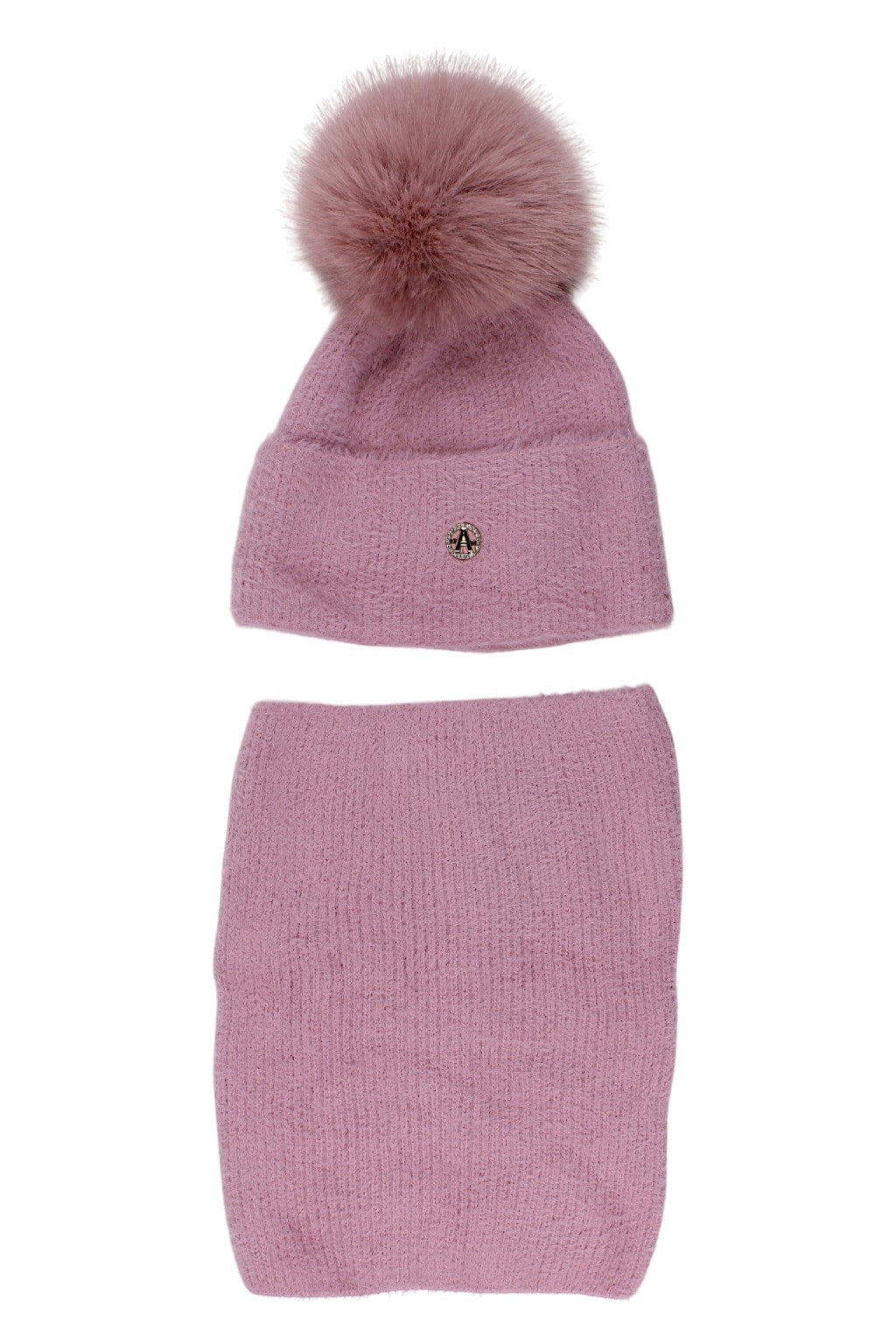 Komplet czapka komin dziewczęcy różowy Ambra 8108-221025