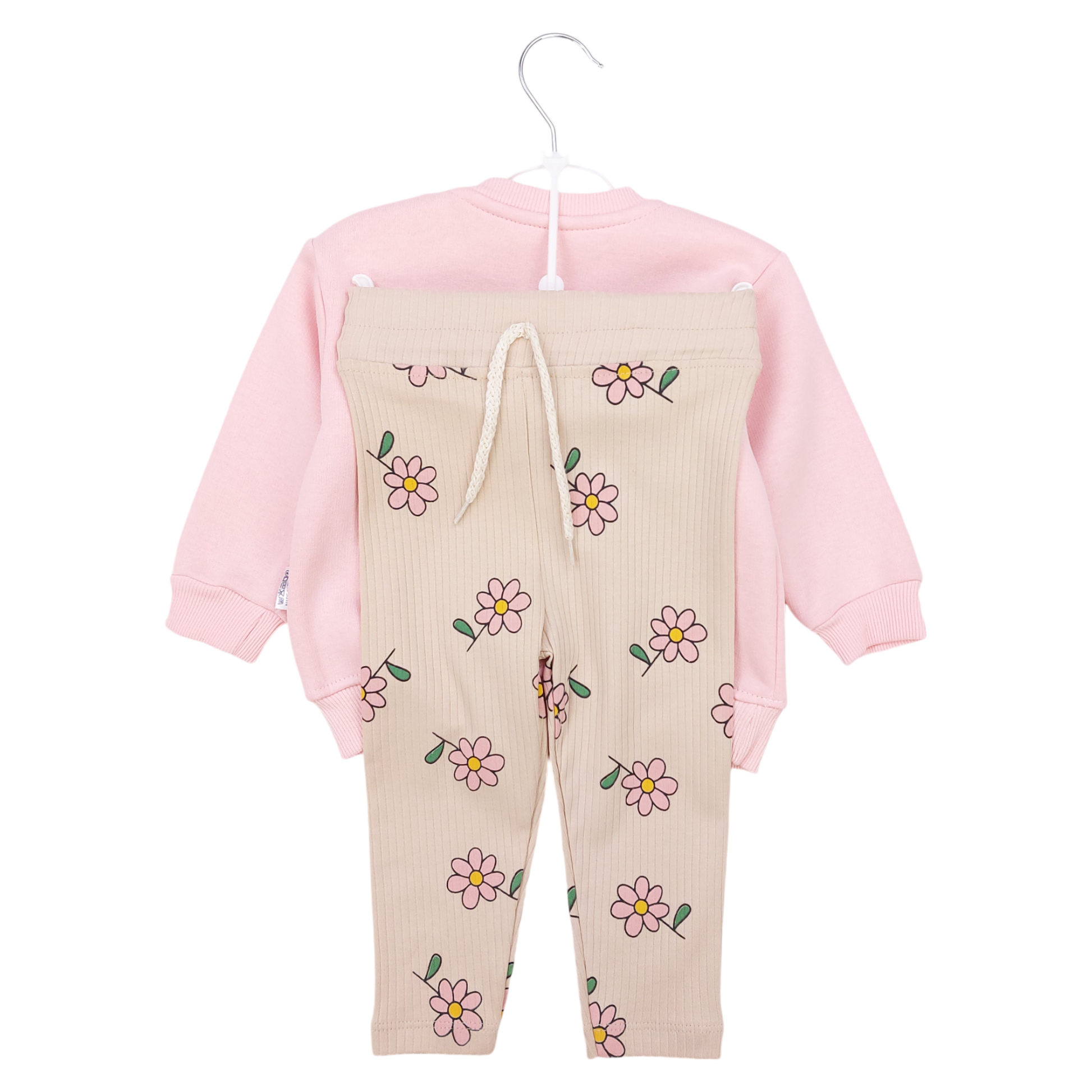 Ten komplet dziewczęcy marki Murat Baby to idealne rozwiązanie na sezon jesień-zima , kiedy małe dziewczynki potrzebują komfortu i ciepła. Dzięki wykonaniu z wysokiej jakości bawełny, zestaw jest przyjemny dla skóry dziecka i pozwala na swobodną zabawę oraz aktywności na świeżym powietrzu. Bluza z długim rękawem posiada miękkie ściągacze, które delikatnie dopasowują się do ciała, chroniąc przed chłodem. Spodnie z delikatnym kwiatowym wzorem dodają dziewczęcego uroku i są elastyczne, co zapewnia pełną swobodę ruchu. Komplet dziecięcy z tego zestawu sprawdzi się zarówno w domu, jak i na spacerze.