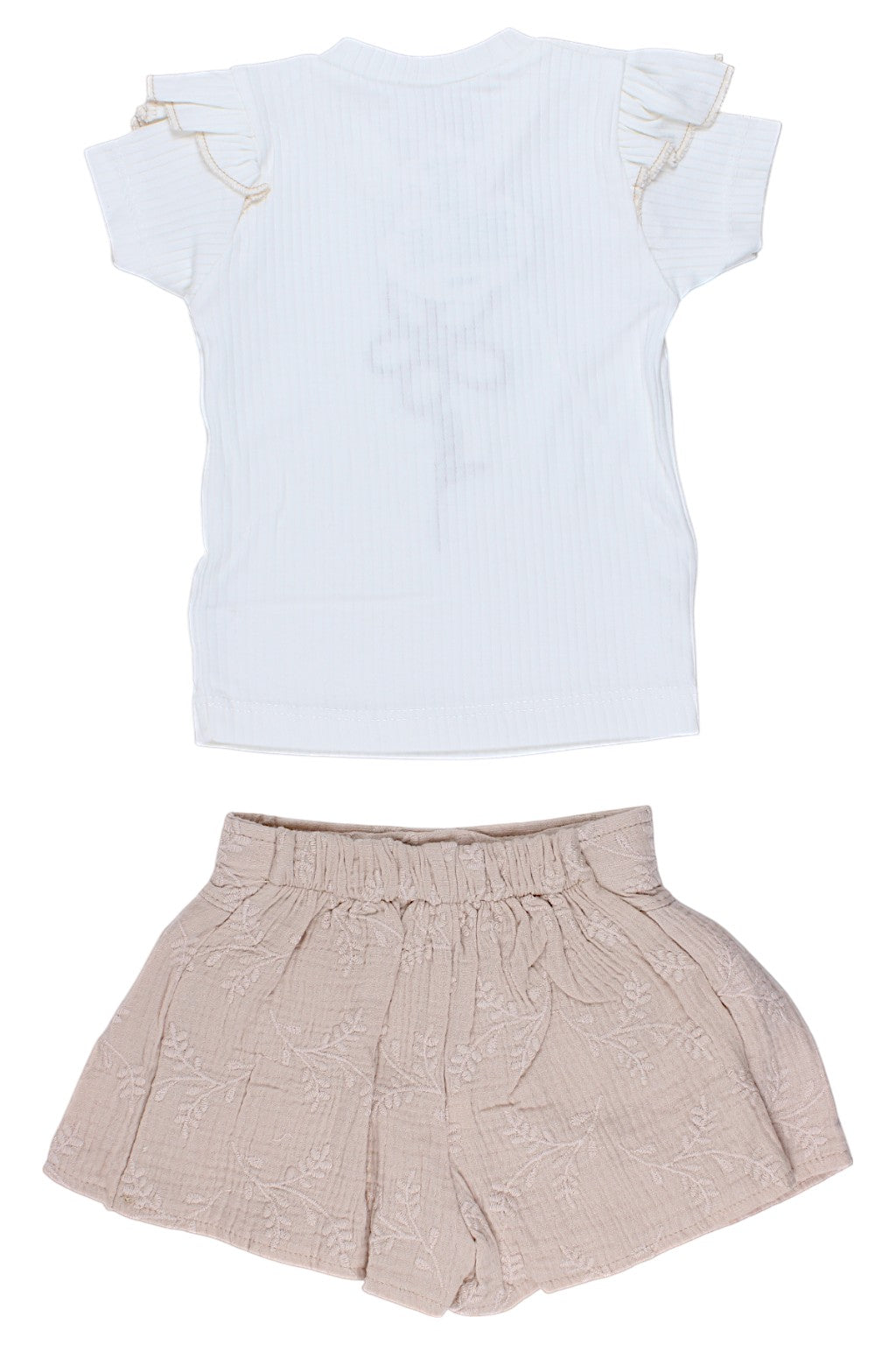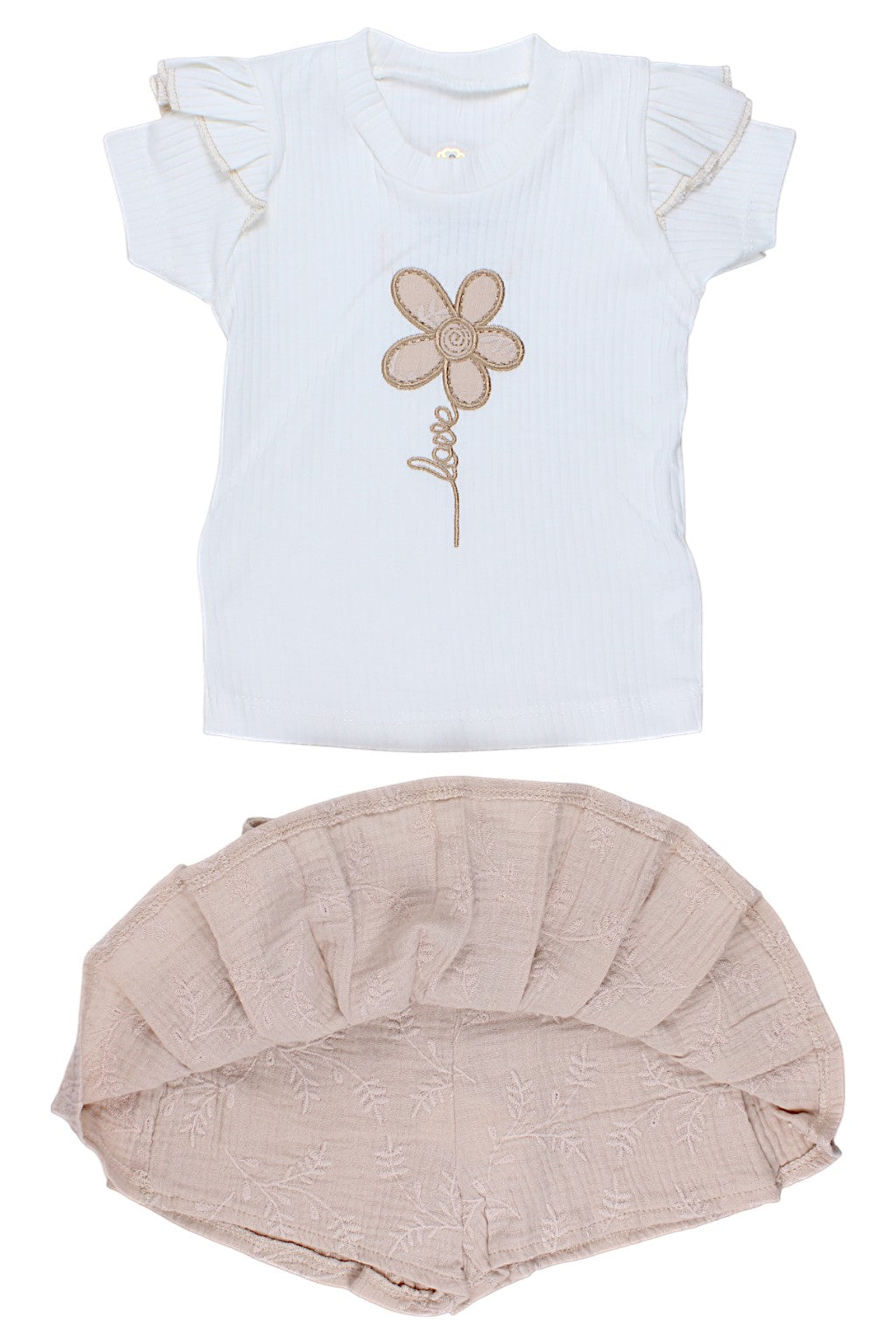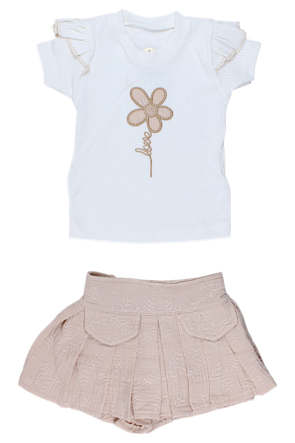 Beżowy komplet spódnico-spodenki dla dziewczynki marki Lumia Baby
