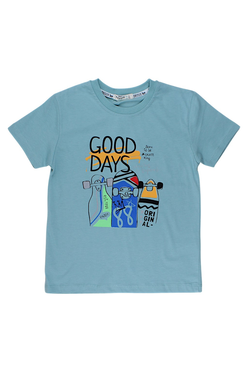 Chłopięca koszulka Good Days w kolorze mięty, idealna na sezon wiosna-lato, wnosi powiew świeżości do dziecięcej garderoby. Wykonana przez markę Breeze, z dbałością o detale, koszulka charakteryzuje się klasycznym krojem i jest niezwykle wygodna dla dziecka. Na zdjęciu widoczna jest prostota projektu oraz delikatny kolor, który pasuje do wielu stylizacji. Brak kieszeni i dodatków pozwala skupić się na komfortowym noszeniu przez cały dzień.