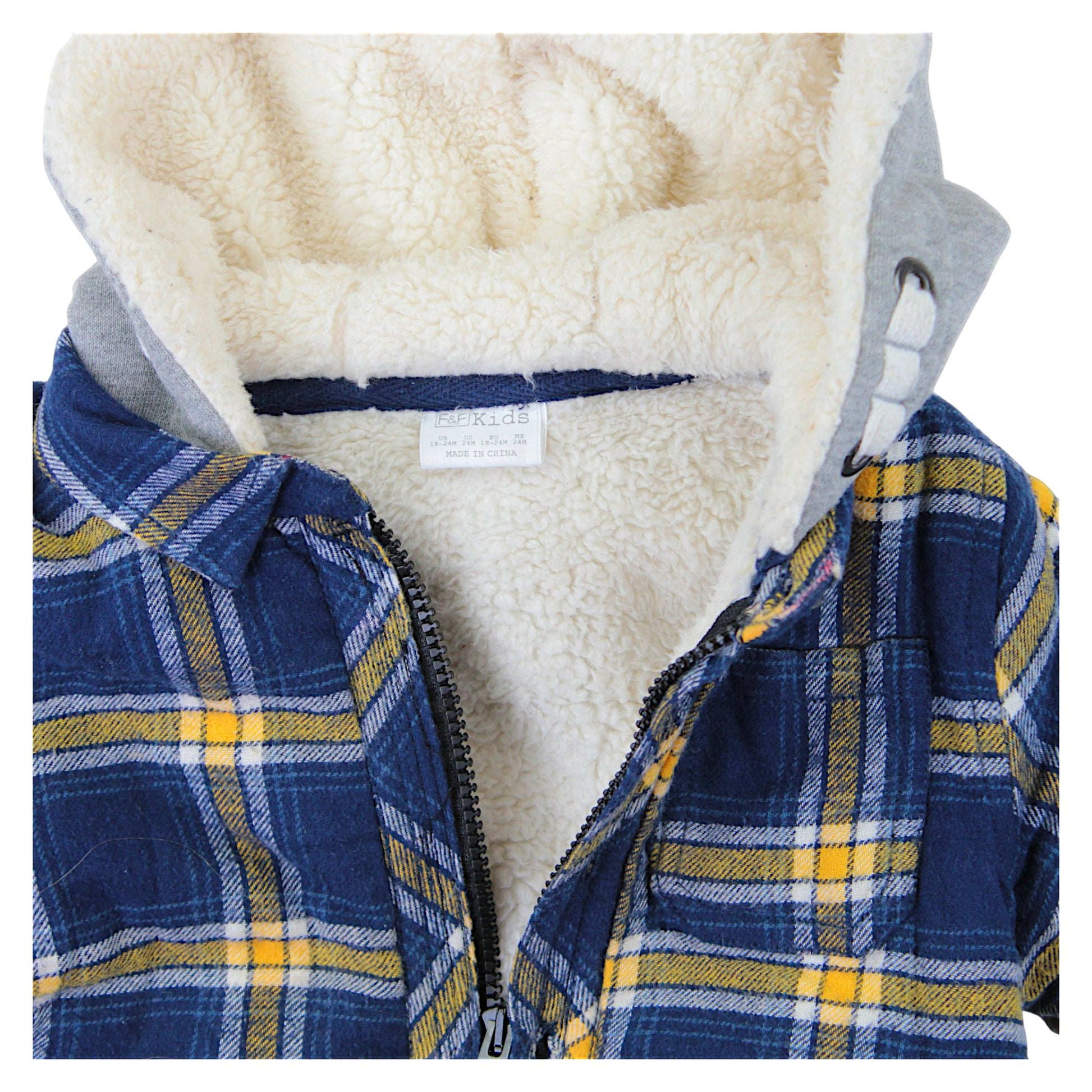 Granatowa ocieplana kurtka z kapturem marki F&F Kids to idealny wybór na sezon wiosna-lato. Wykonana z miękkiego flanelowego materiału w kratę, zapewnia nie tylko stylowy wygląd, ale również komfort cieplny. Ocieplenie z miękkiego kożuszka wewnątrz kurtki oraz w kapturze chroni przed chłodem i wiatrem, gwarantując ciepło nawet w chłodniejsze dni. Kaptur z szarym wykończeniem dodaje sportowego charakteru i dodatkowej ochrony przed wiatrem. Zapięcie na suwak jest praktyczne i wygodne w codziennym użytkowaniu. Długi rękaw oraz klasyczny krój nadają kurtce ponadczasowego stylu.