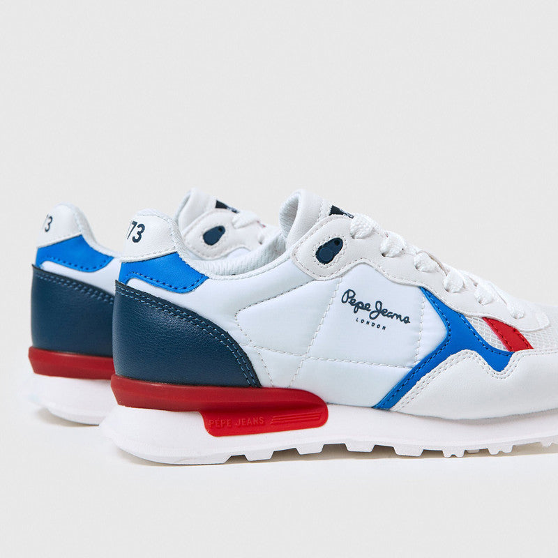 Pepe Jeans Sneakersy BRITT REBIRTH BOYS junior boy PBS30518-800 WHITE to idealny wybór dla młodych chłopców, którzy cenią wygodę, modny wygląd i wyjątkową trwałość obuwia. Te stylowe sneakersy z unikalną kombinacją kolorów - bieli, niebieskiego i czerwonego, sprawdzą się świetnie na każdą porę roku, będąc doskonałym dopełnieniem zarówno sportowych, jak i casualowych stylizacji.