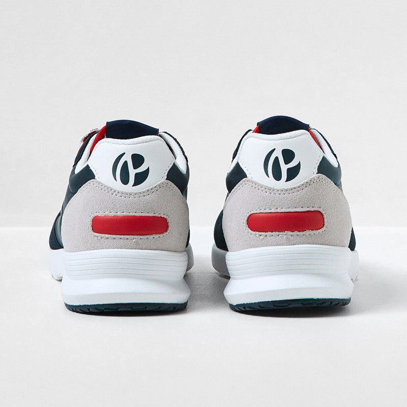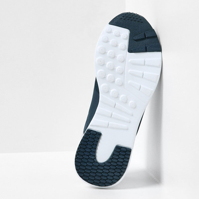- Stylowy design – Granatowy kolor w połączeniu z subtelnymi białymi i czerwonymi akcentami nadaje butom sportowy, a zarazem elegancki charakter.