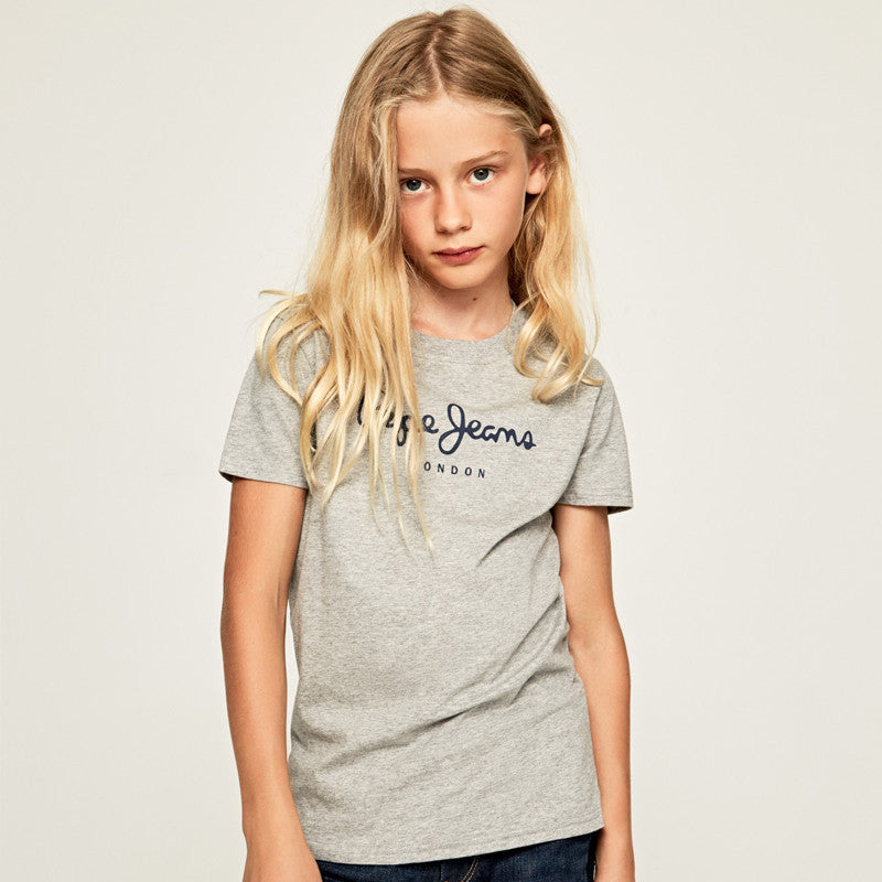 Pepe Jeans T-shirt basic z logo ART junior chłopak PB501228-933 GREY MARL