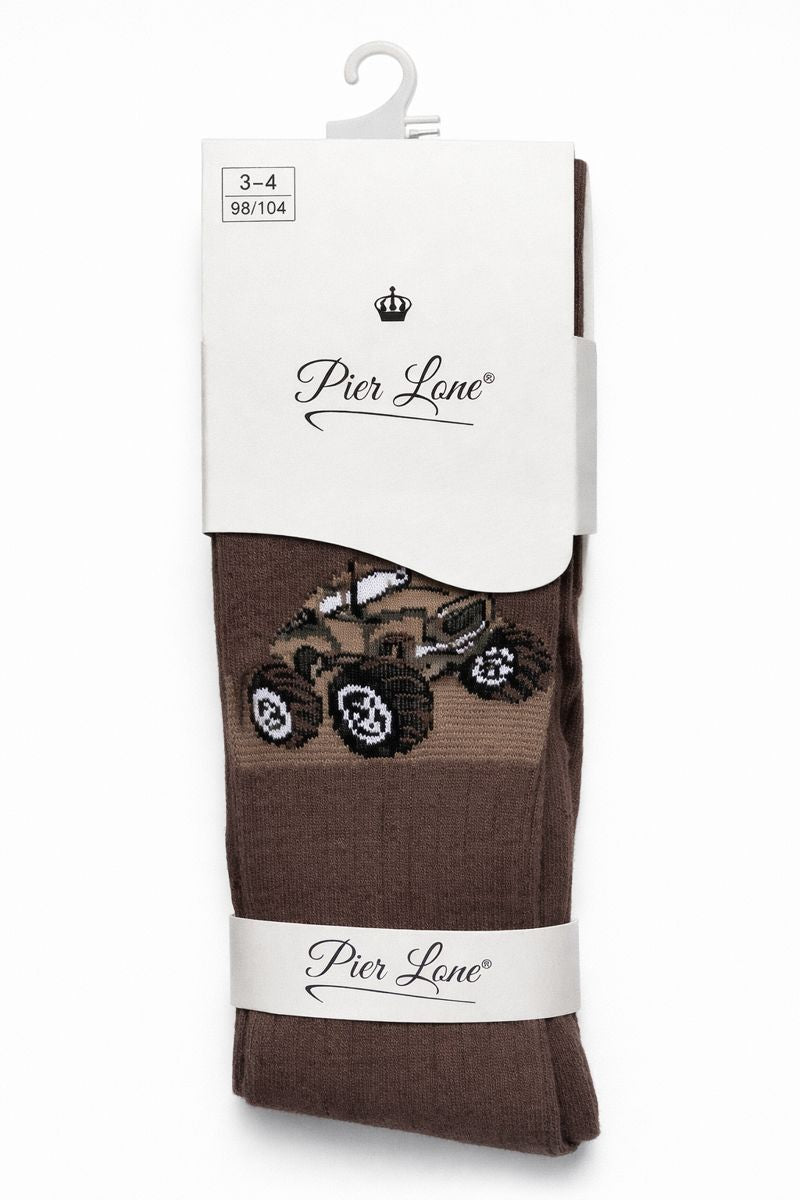 Chłopięce rajstopy z motywem aut w kolorze czekoladowym