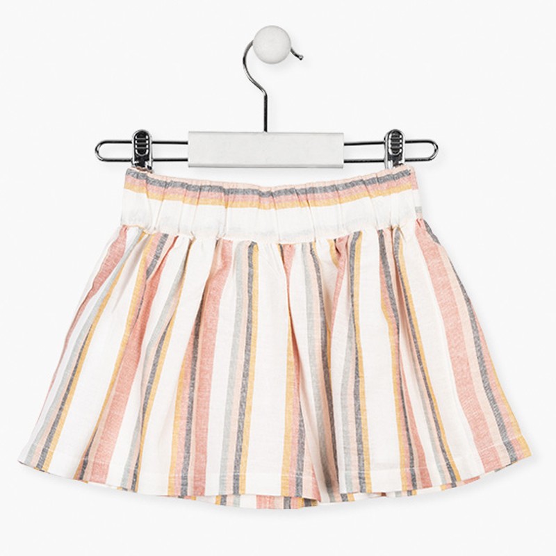 Spódnica lniana dla dzieci w paski z kieszonkami dla dziewczynek Losan z kolekcji wiosna-lato kod produktu 116-7062AL kolor 718 Różowy. Ubranka dziecięce.