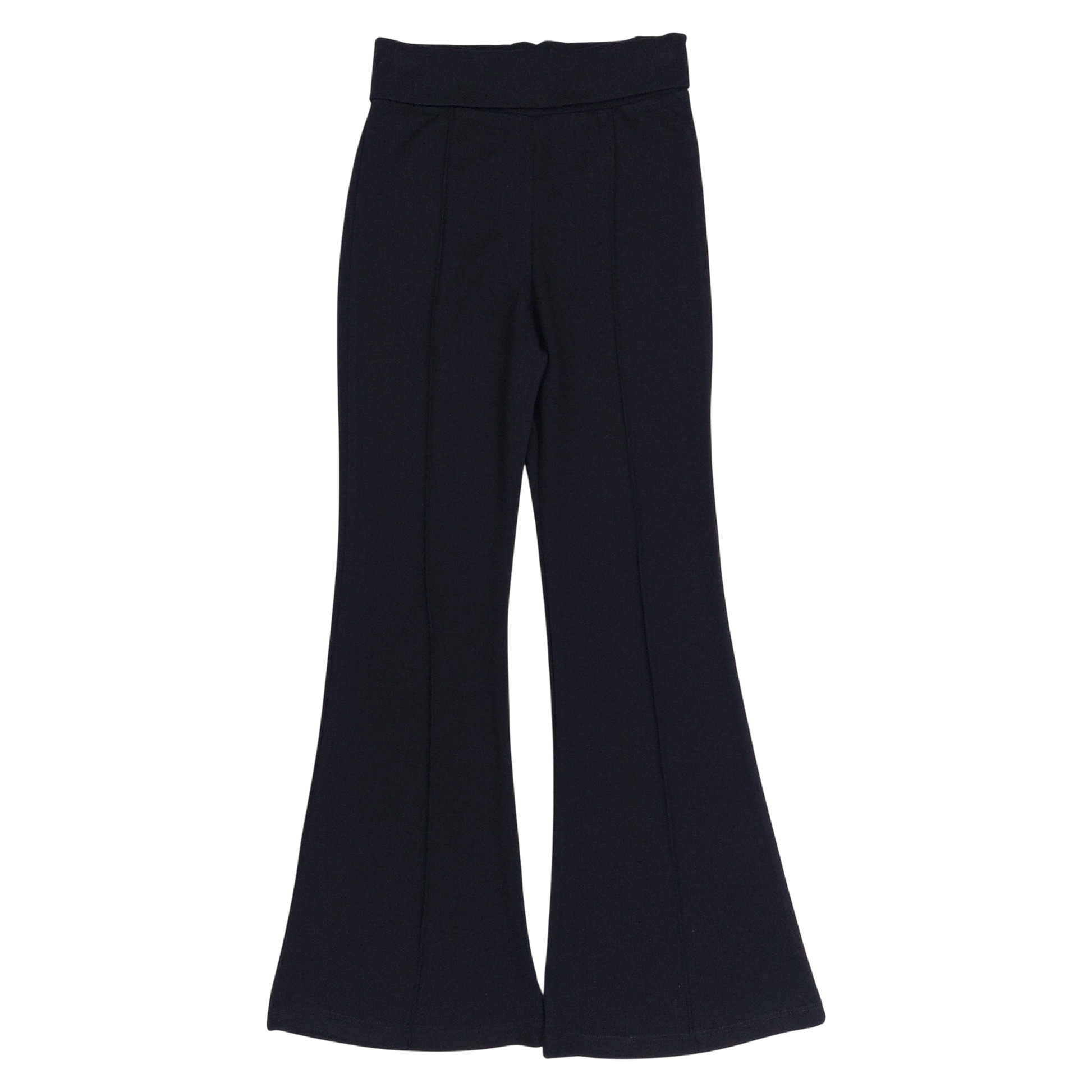 Stylowe i eleganckie spodnie dziewczęce w kolorze czarnym. Model typu dzwony z wyraźnym przeszyciem na nogawkach, które dodaje szyku. Elastyczna talia zapewnia komfort noszenia, a materiał z dodatkiem elastanu doskonale dopasowuje się do sylwetki.