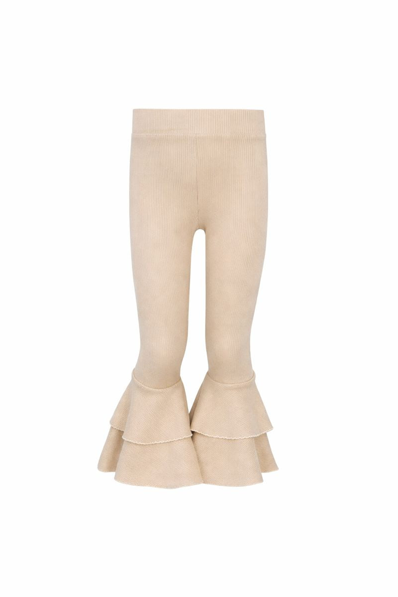 Beżowe spodnie dzwony z falbanką dla dziewczynki Timi
