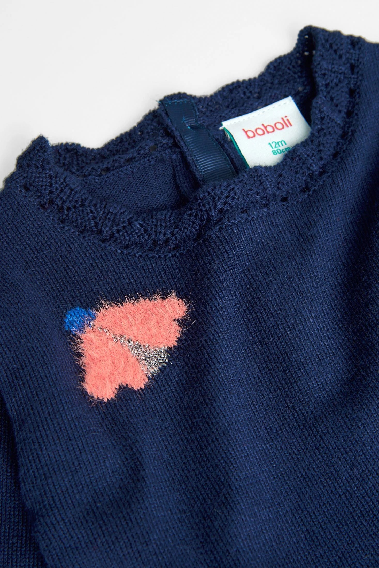 Sukienka dziewczynka z nowej kolekcji baby girl Boboli kod produktu 707341 kolor 2440 granat. Odzież dziecięca.
