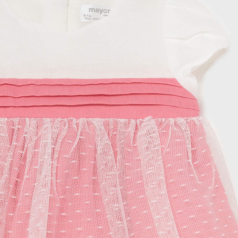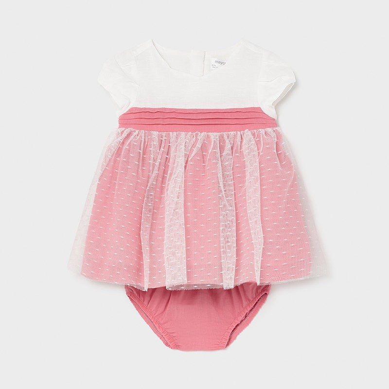 Sukienka elegancka dla dzieci z krótkim rękawem i majteczkami dziewczynka Mayoral z kolekcji newborn girl z sezonu wiosna-lato kod produktu 1823 kolor 63 Macaroon. Odzież dla noworodków.