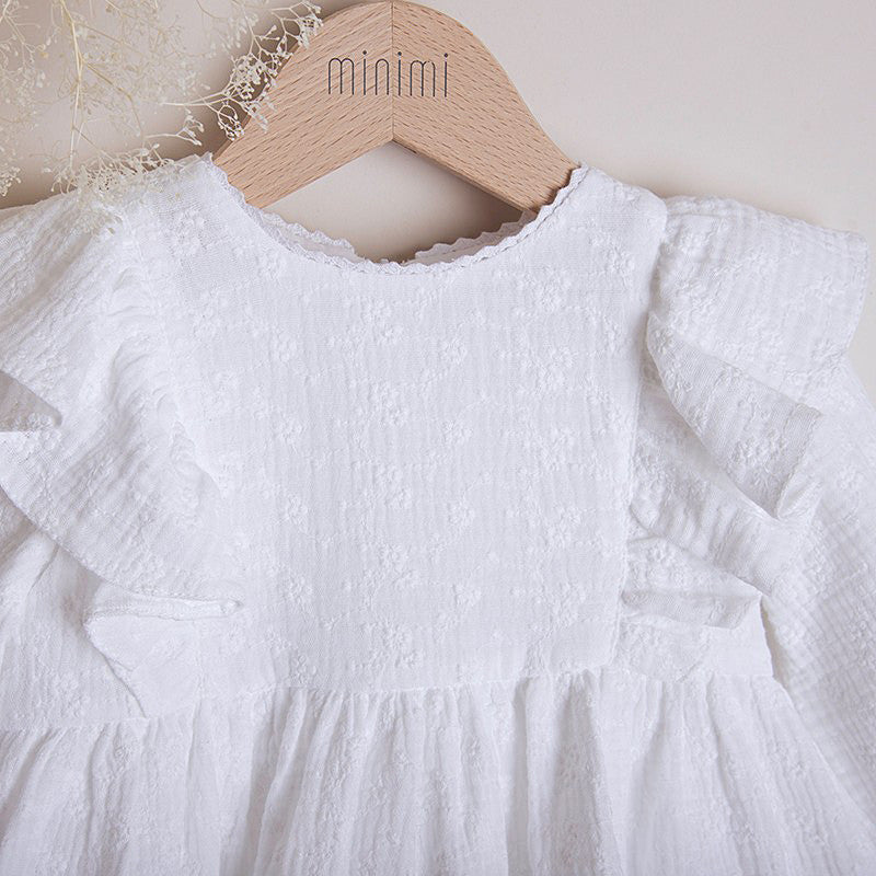 Sukienka do chrztu dla dzieci elegancka dziewczęca wizytowa MINIMI z kolekcji jesień zima kod produktu 55/22 kolor biały. Moda dla dzieci.