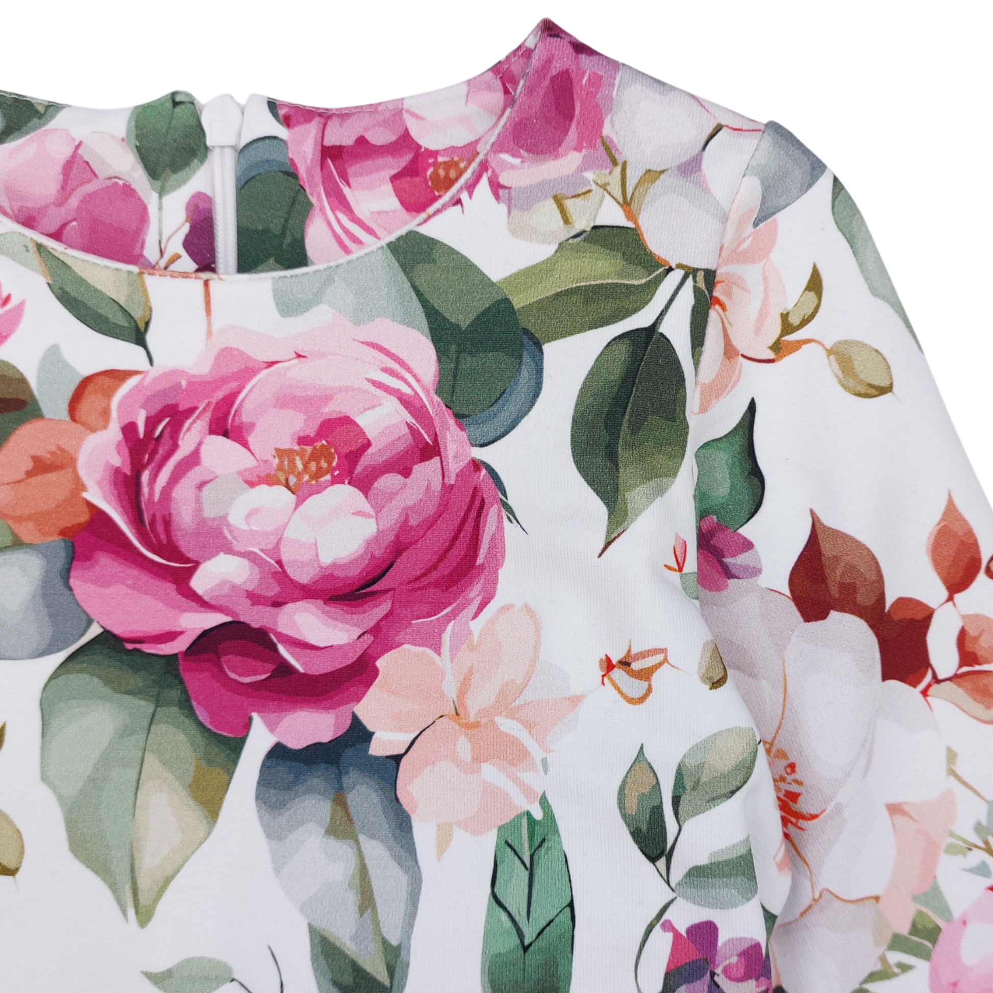 Sukienka kokarda dziewczęca Katerina 552-41124 to wyjątkowa propozycja na sezon jesień-zima, łącząca elegancję z dziewczęcym urokiem. Góra sukienki została wykonana z materiału w kwiatowy wzór , który dodaje całości romantycznego i delikatnego charakteru. Długie rękawy sprawiają, że sukienka jest idealna na chłodniejsze dni, jednocześnie zachowując szykowny wygląd.