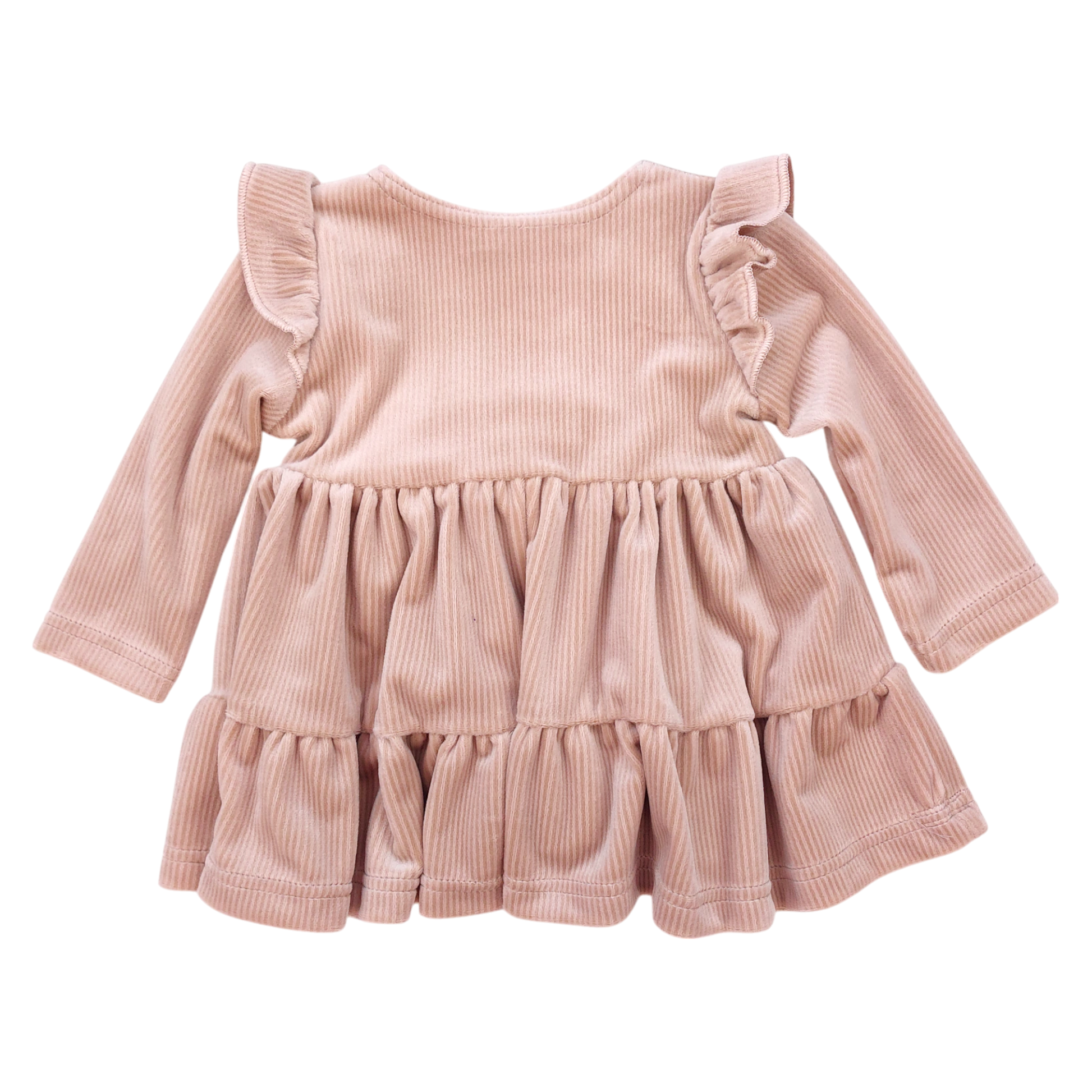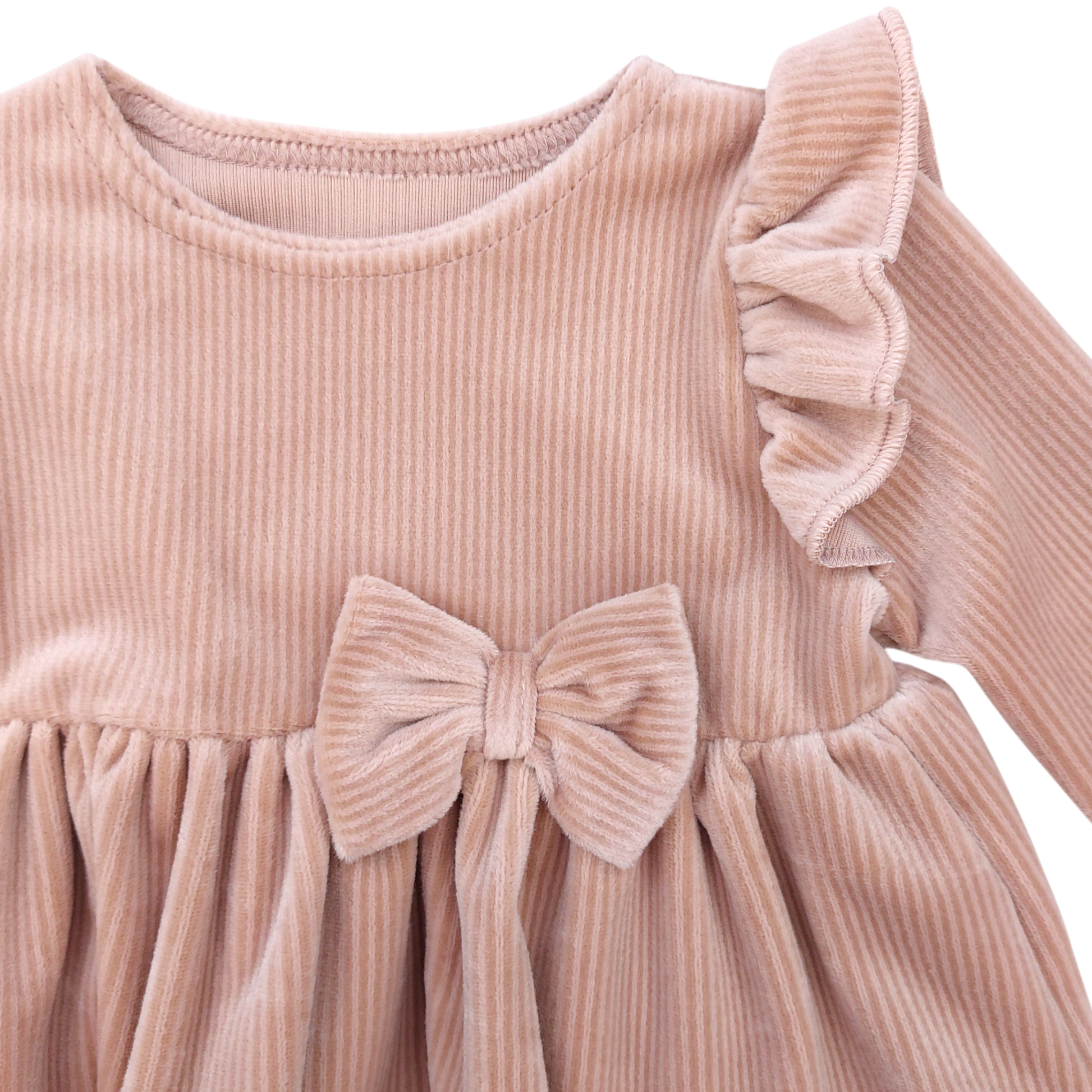 Sukienka welurowa prążek dziewczęca beż KWiAW 132-151124-1