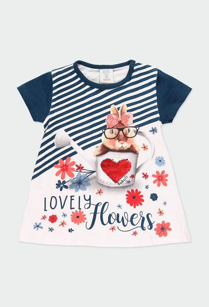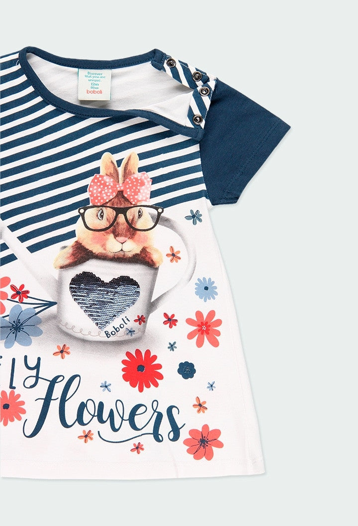 Sukienka z nadrukiem dla dziewczynki Boboli 204062-1100 kolor biały/granat