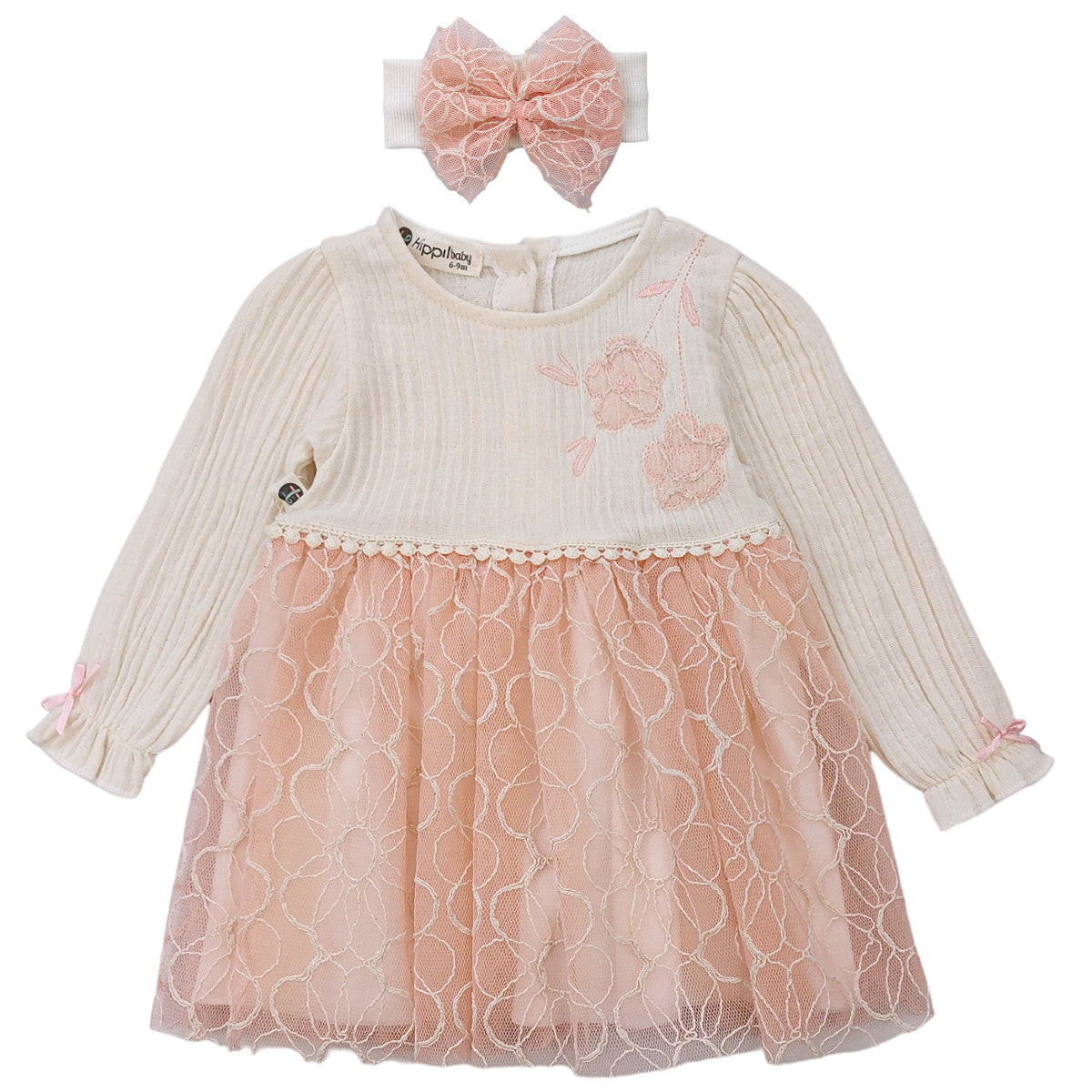 Sukienka Z Opaską dla dzieci Guliwerkids z nowej kolekcji kod produktu 6064-26224 kolor pudrowy róż. Odzież dziecięca.