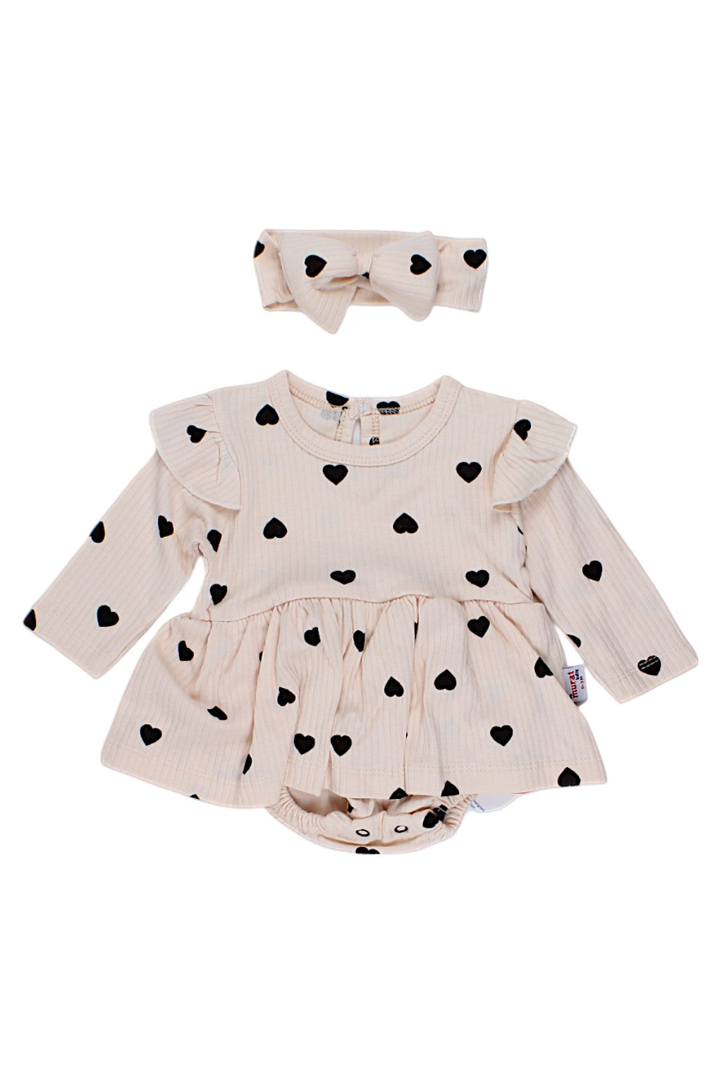 Beżowe Sukienko-body z Opaską dla Dziewczynki Murat Baby