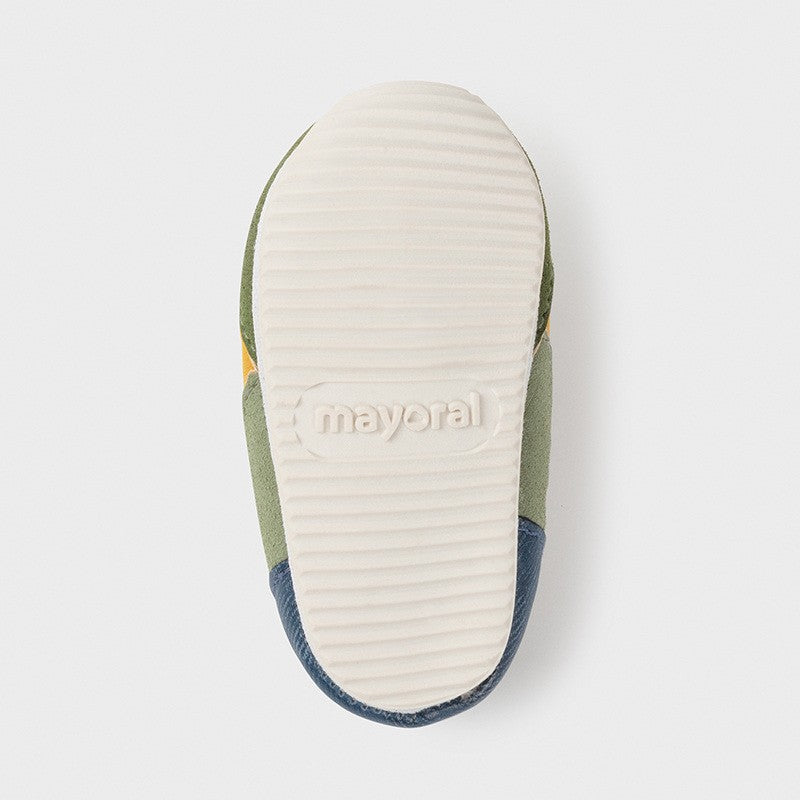 Tenisówki dla dzieci niechodki chłopiec Mayoral z kolekcji newborn boy z sezonu wiosna-lato kod produktu 9399 kolor 57 Khaki. Ubranka dla noworodka.